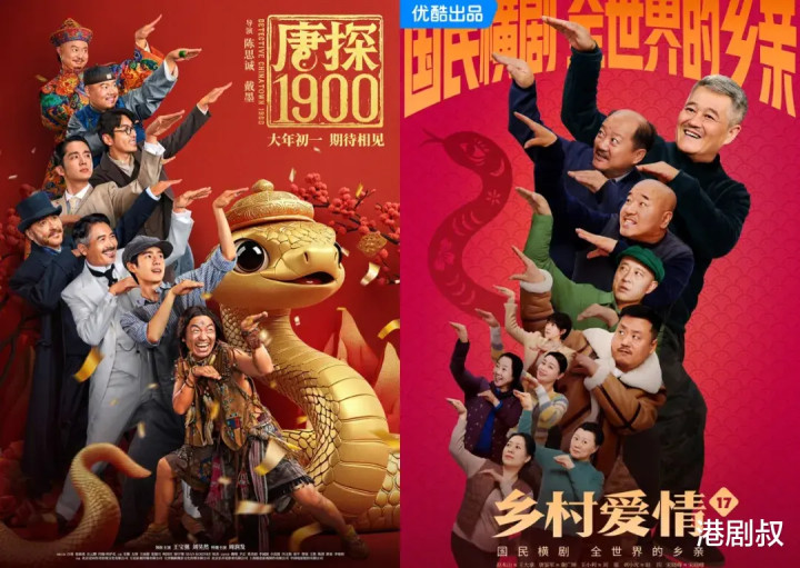 《唐探1900》和《乡村爱情17》宣传海报严重重迭