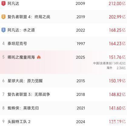 《哪吒之魔童闹海》炸出151亿票房,平直杀进天下影史前五,这数字把好莱坞吓得连夜改脚本。