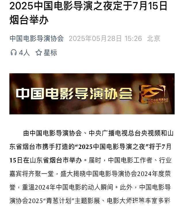 中国电影的应允发展离不开每一位电影东说念主的劳苦付出,为了问候经典,赏赐特殊,由中国电影导演协会、中央播送电视总台央视频与山东省烟台市三方联袂打造的“2025中国电影导演之夜”将于7月15日在山东烟台广泛启幕。届时,来自世界各地的电影使命者、行业首长以及备受瞩指表明星嘉宾将集聚一堂,共同见证中国电影导演协会2024年度各项荣誉的揭晓,一同追念往日一年中国电影所带来的感动与颠簸。这不仅是一场光影盛宴,更是一次中国电影东说念主雷同陶冶、预测改日的紧迫机会。