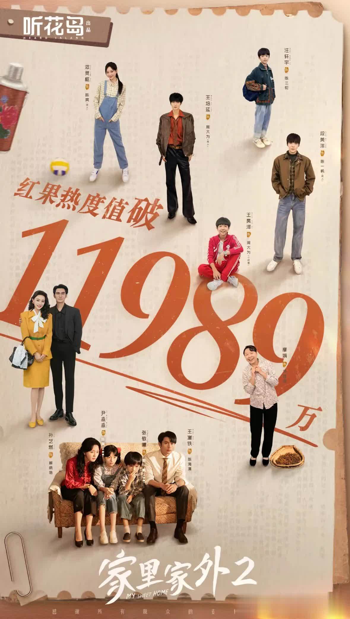TOP7——《家里家外2》 最高热度指数:11989万❤️主演:王说念铁★孙艺燃★邓灵枢★王培延