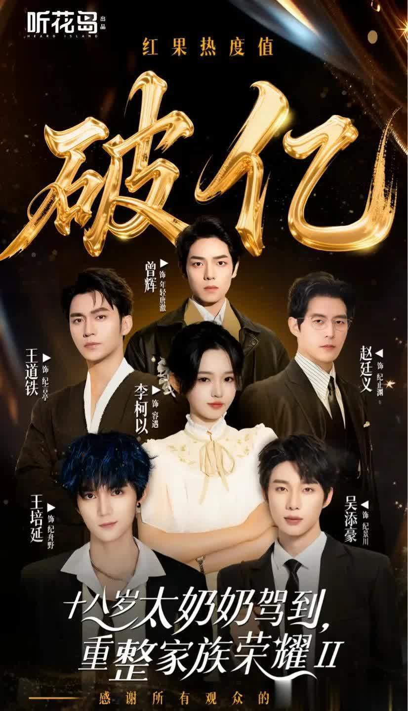 TOP1——《十八岁太奶奶驾到:重整眷属荣耀3》 最高热度指数:20164万❤️主演:李柯以★陈添祥★王培延★赵廷义★王说念铁★吴添豪★曾辉★孟娜