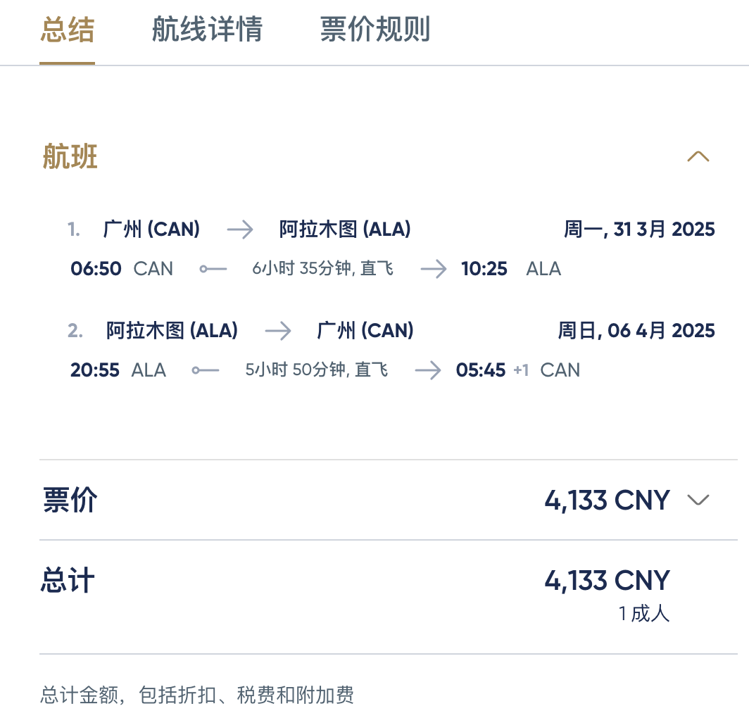 4、阿斯塔纳航空:广州=阿拉木图