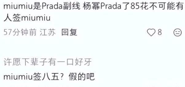 品牌配合也断得差未几了,之前传杨幂要签Miu Miu,后果没东说念主肯定这件事,真签下来反而显得掉价。
