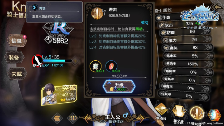 第五名《苍之骑士团2》是一款战术卡牌手游,领有自动战役与涤荡功能。这减少了重叠刷图的繁琐操作,让玩家不错将更多的元气心灵放在扮装养成的资源权谋上。其扮装养成的资源权谋昭着,玩家不错阐发我方的喜好和战术来培养扮装。
