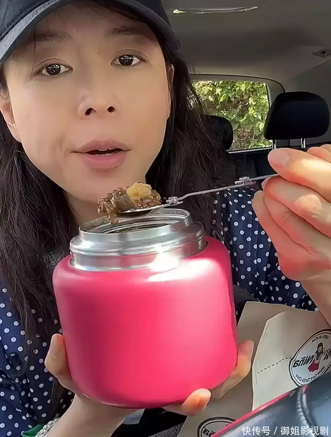 张静初的午餐也强横常接地气,径直在车上处置,先生啃一颗大红椒,再吃完早上带的扁豆汤。