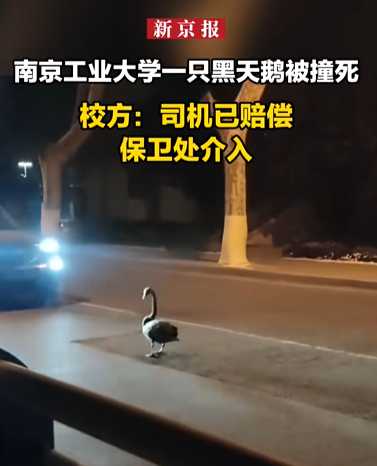 据新京报讯息,南京工业大学一黑天鹅被汽车撞倒的视频激励热议。